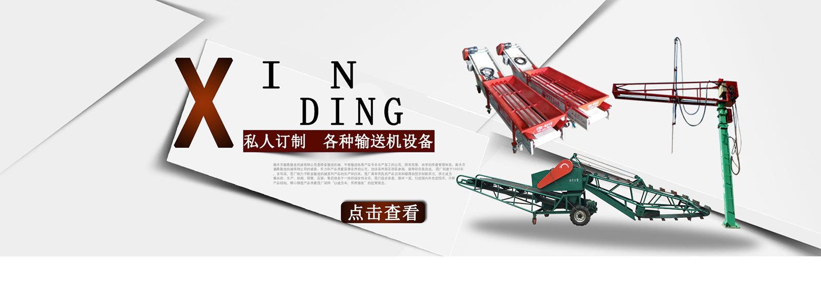 衡水市鑫鼎輸送機械有限公司是糧食輸送機械、平板輸送機等產(chǎn)品專業(yè)生產(chǎn)加工的公司,擁有完整、科學(xué)的質(zhì)量管理體系。衡水市鑫鼎輸送機械有限公司的誠信、實力和產(chǎn)品質(zhì)量獲得業(yè)界的認(rèn)可。歡迎各界朋友蒞臨參觀、指導(dǎo)和業(yè)務(wù)洽談。 我廠創(chuàng)建于1980年,多年來,我廠致力于糧食輸送機械系列產(chǎn)品的生產(chǎn)和開發(fā)。我廠具有優(yōu)良的產(chǎn)品開發(fā)和雄厚的技術(shù)創(chuàng)新實力,使之成為集科研、生產(chǎn)、檢測、銷售、安裝、售后服務(wù)于一體的綜合性企業(yè),我們追求卓越,崇尚一流,引進(jìn)國內(nèi)外先進(jìn)技術(shù),不斷產(chǎn)品結(jié)構(gòu),精心鑄造產(chǎn)品質(zhì)量我廠堅持“以誠為本,優(yōu)質(zhì)服務(wù)”的經(jīng)營理念。。積極拓展市場,贏得了廣大客戶的信賴和一致好評。產(chǎn)品暢銷山西、山東、遼寧、黑龍江、吉林、北京、天津、內(nèi)蒙古等28個省、市、自治區(qū)。